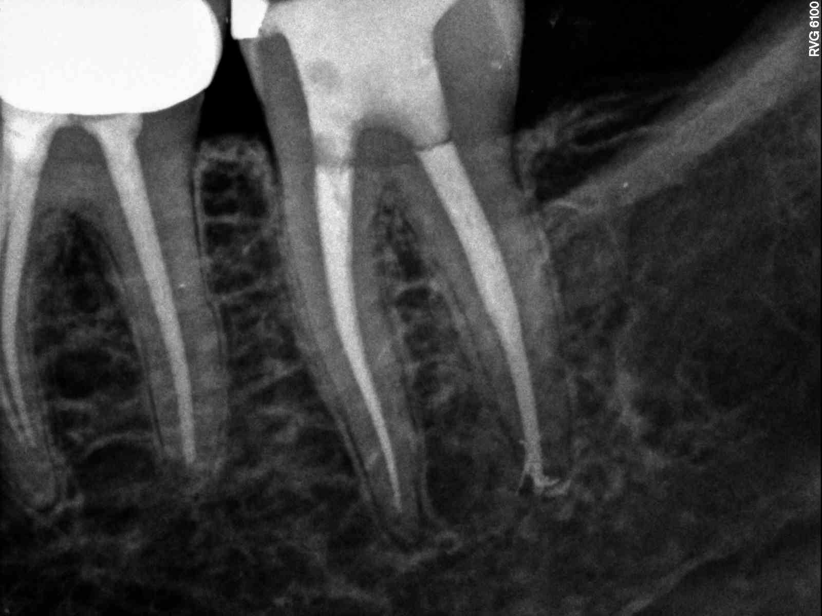 | Can see file in distal canal heading mesially at apex |