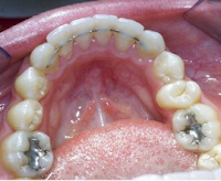 A Fixed retainer, or permanent retainer is a different type of retainer than the 2 above. A fixed retainer typically consists of a passive wire bonded to the tongue-side of the teeth (usually on the Lower teeth only, depending on the bite). Unlike the previously-mentioned retainer types, fixed retainers cannot be removed by the patient. Some doctors prescribe fixed retainers regularly, especially where active orthodontic treatments have effected great changes in the bite and there is a high risk for reversal of these changes. This retainer is often kept in place for life. Fixed retainers may lead to tartar build-up or gingivitis due to the difficulty of flossing while wearing these retainers. As with dental braces, patients often must use floss threaders to pass dental floss through the small space between the retainer and the teeth. We will help you understand how to take care of this retainer!!