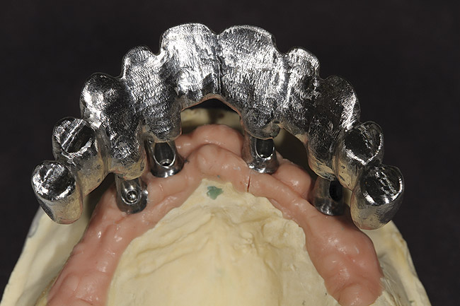 This case would have been a slam dunk if the surgeon had placed implants where they should have been. It appears to me even if the restorative doc was presented with this case to start he should have insisted on an implant in #4 also, there appears to be room. They state in the article that she was class III to start with. I would like to see a lateral ceph because I am guessing she is class III because that is the pattern of bone loss. I also am guessing the lowers were restored right above the existing resorbed bone making it very difficult to restore the uppers properly (I do not know that for sure but is is highly likely and would fit with the poor planning pattern seen in this case). Against a mand implant supported prosthesis this case is at a much higher risk of failure.