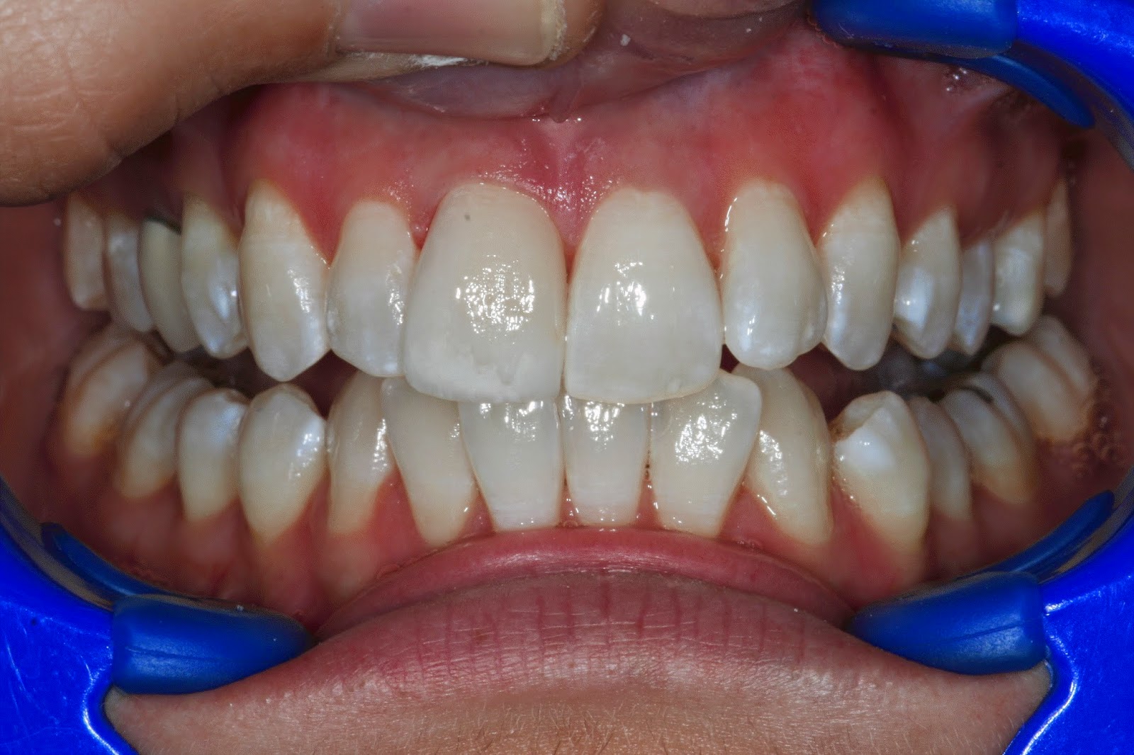 Sometimes when an accident occurs and a front tooth is broken a decision is made to re-face the entire tooth with a porcelain veneer. It is very challenging for all those involved to get a “perfect ” match. Fortunately their are very skilled lab technicians out there that are capable of stepping up to the challenge. Try to guess which one is fake before scrolling down farther.